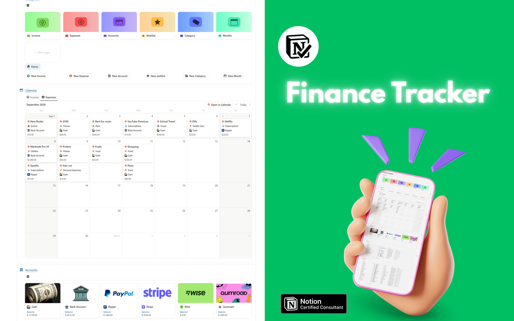 Take control of your finances with this Notion's Personal Finance template. Budget planners, expense trackers, trading journals, investment logs, and savings goals are all part of our suite, designed to help you manage your money smarter. Ideal for anyone looking to achieve financial stability and growth.