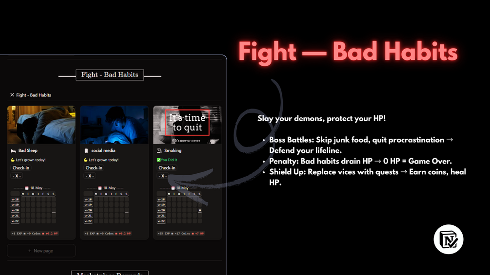 - Penalty: Bad habits drain HP → 0 HP = Game Over.